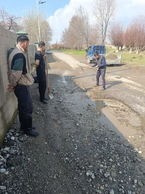 Чек айылында ички жолдорду жамоо иштери жүргүзүлдү.